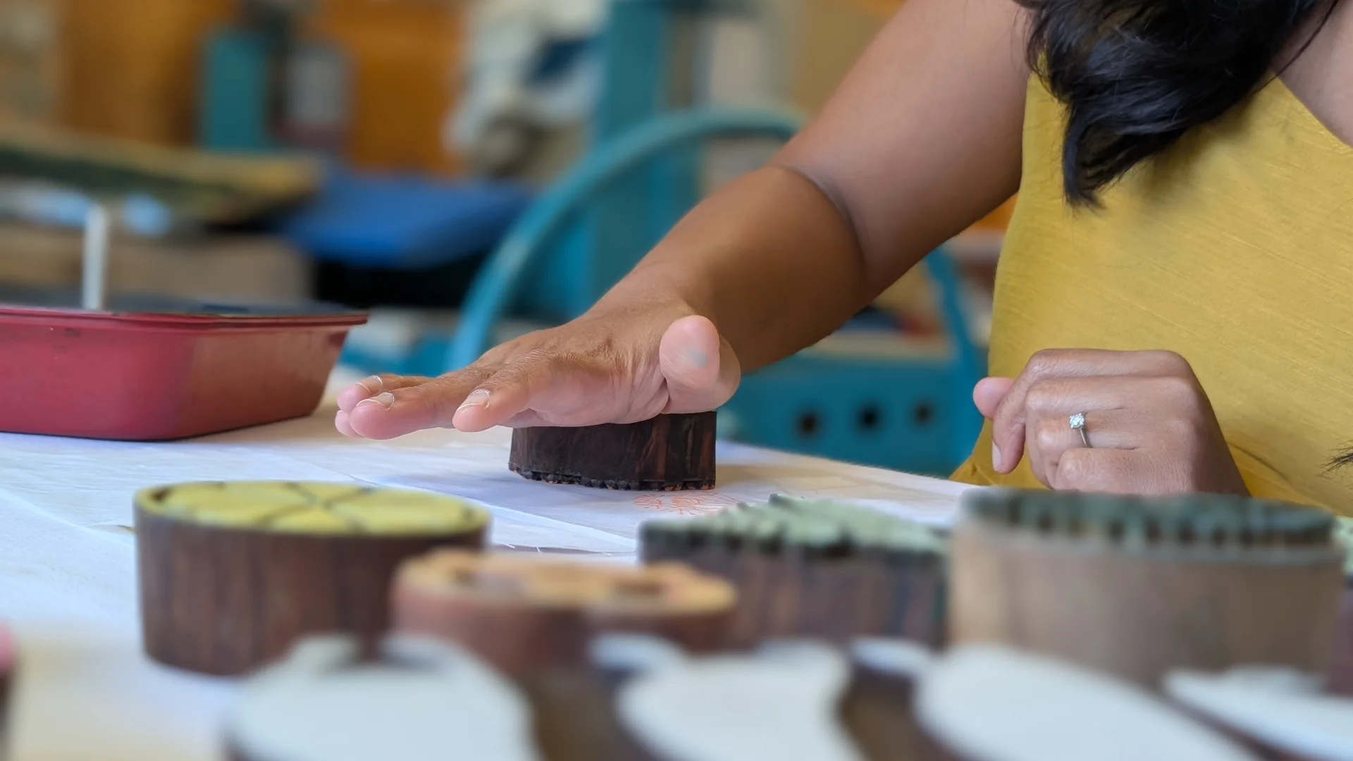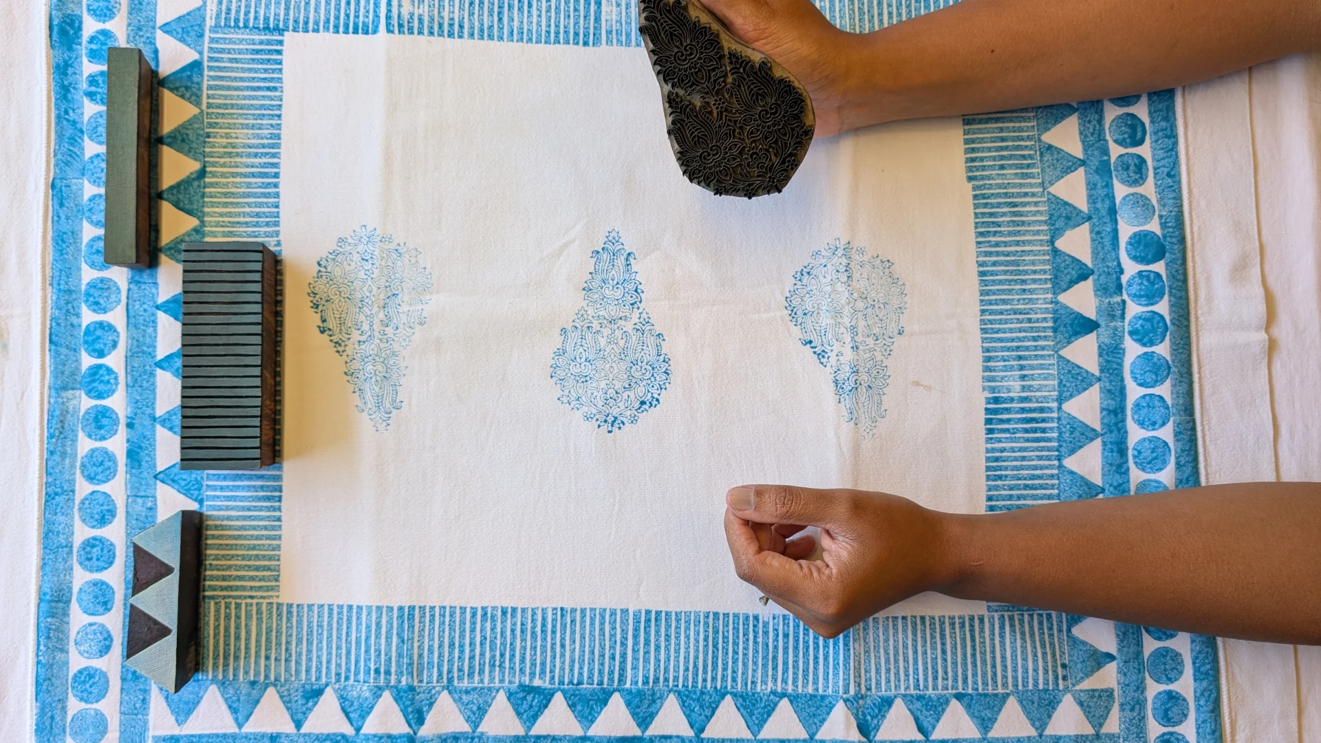 Lors de notre voyage en Inde en 2024, nous avons fait une découverte : l'Alsace était un centre d'impression sur bois, également connu sous le nom d'« indienne ». Cela nous a amenés à essayer ce magnifique art traditionnel originaire d'Inde qui a captivé les Alsaciens au XVIIIe siècle. Aujourd'hui, vous pouvez visiter le musée de l'impression sur les étoffes à Mulhouse, où les tissus indiens sont les vedettes du musée. L'ensemble du processus d'impression à la main commence par une idée dans notre (ou votre) esprit, qui est ensuite esquissée sur papier. Un artisan qualifié sculpte ensuite méticuleusement ce motif sur un bloc de bois de sheesham, un matériau durable. À l'aide de teintures naturelles, ils transforment des textiles unis, tels que des écharpes, des draps, des housses de coussin et bien d'autres articles, en créations uniques et colorées. Nous sommes tombés sous le charme de ce processus rythmique qui consiste à tremper des blocs dans la couleur pour créer de magnifiques motifs.